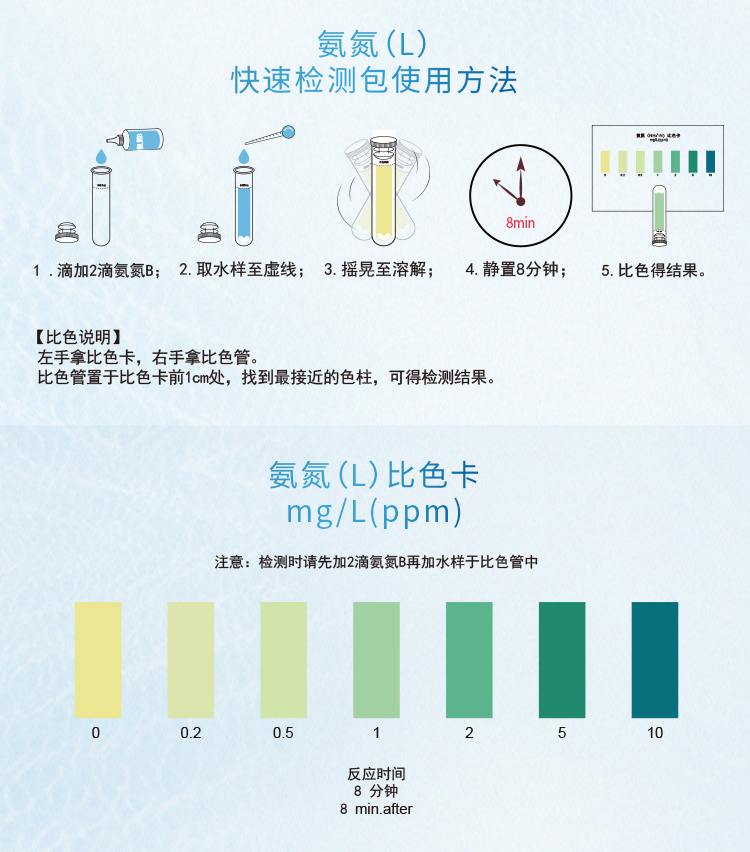 2.本產(chǎn)品檢測(cè)水中游離態(tài)的氨(NH3)或銨離子(NH4+)含量在0-10mg/L(ppm)范圍內(nèi),若要檢測(cè)10mg/L以上濃度水樣,請(qǐng)預(yù)先稀釋水樣后再進(jìn)行測(cè)定,具體操作見(jiàn)稀釋說(shuō)明書(shū)。