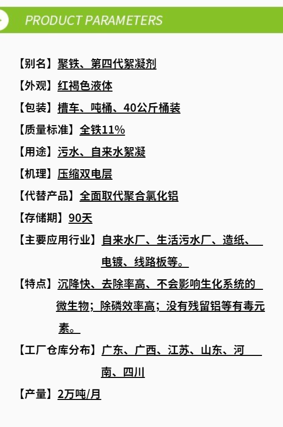 1.高效:聚合硫酸鐵是復合型高分子聚合物,分子結構龐大,吸附能力強,凈水效果優于所有傳統的無機凈水劑;